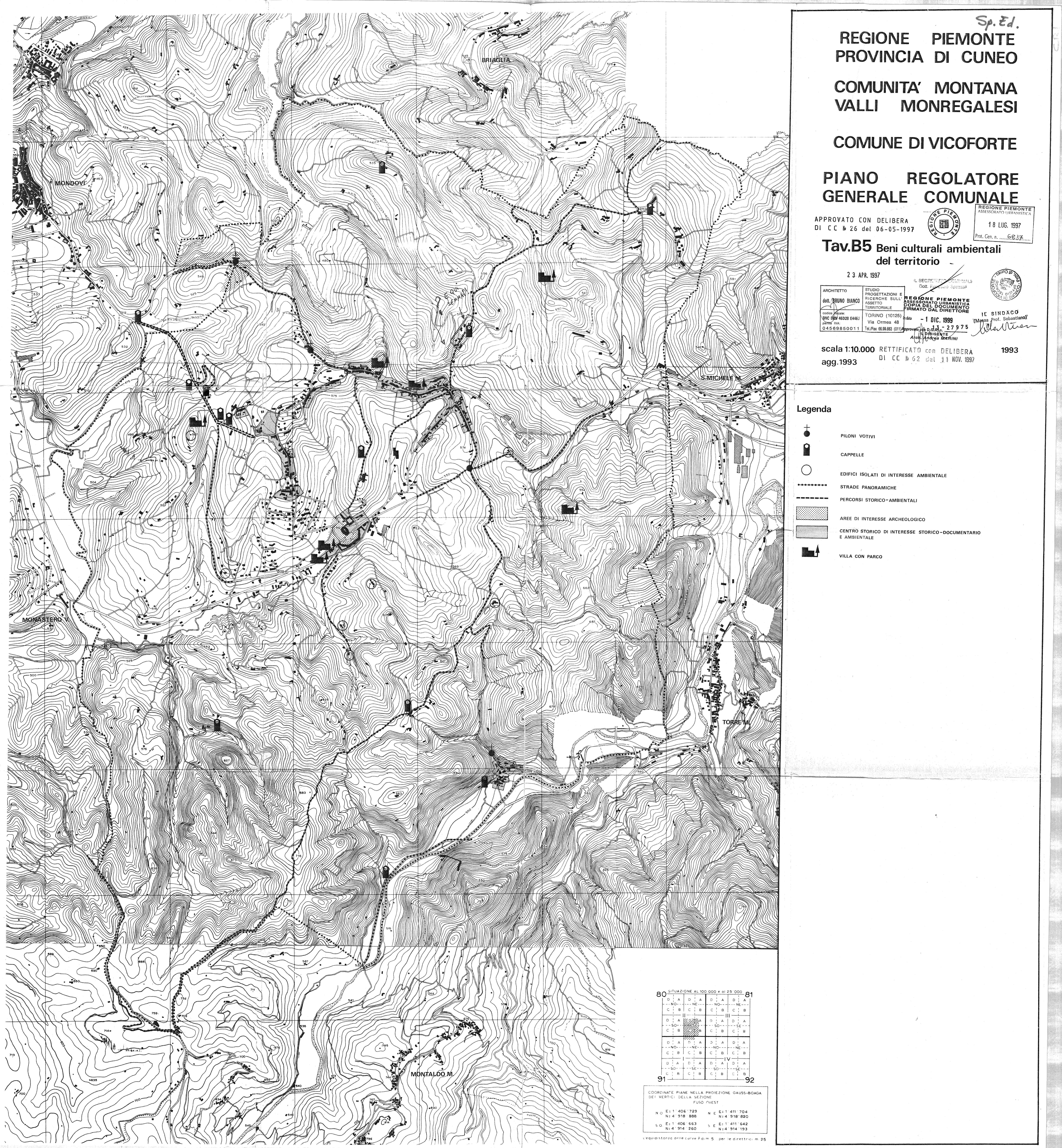 - P.R.G.I. approvato in data 17/12/1985 dalla Giunta regionale del Piemonte con delibera n° 153-2187 - Variante n° 1 al PRGI approvato in data 25/5/1992 dalla Giunta Regionale Piemonte con delib. n° 35-15314 - PRGC approvato dal Consiglio comunale in data 6/5/1997 con delibera n° 26, successivamente modificata con delibera n° 62 del 11/11/1997. - Variante in itinere adottata dal Consiglio comunale in data 27/2/1998 con delibera n° 30 - Approvazione nuovo PRGC dalla Regione Piemonte con D.G.R. n° 13-27975 del 2/8/1999 - Variante n° 1 approvata dal Consiglio comunale in data 29/3/2001 con delibera n° 26 - Variante n° 2 approvata dal Consiglio comunale in data 28/11/2001 con delibera n° 62 - Variante n° 3 approvata dal consiglio comunale in data 31/3/2004 con delibera n° 15 - Variante n° 4 approvata dal consiglio comunale in data 10/5/2004 con delibera n° 19 - Variante n° 5 approvata dal Consiglio comunale in data 14/6/2005 con delibera n° 31 - Variante n° 6 approvata dal Consiglio comunale in data 26/09/06 con delibera n° 56 - Variante n° 7 approvata dal Consiglio comunale in data 25/9/2007 con delibera n° 58 - Variante n° 8 approvata dal Consiglio comunale in data 24/1/2008 con delibera n°3 - Variante n° 9 approvata dal Consiglio Comunale in data 30/09/2008 con delibera n° 42 - Variante non Variante n° 1/2008 approvata dal Consiglio comunale in data 27/11/08 con delib. n° 54 - Variante Strutturale n° 10 approvata dal Consiglio Comunale in data 29/06/2012 con delibera n° 18 - Variante n° 11 approvata dal Consiglio comunale in data 28/2/2013 con delibera n° 6 - Variante n° 12 approvata dal Consiglio comunale in data 29/04/2021 con delibera n° 11