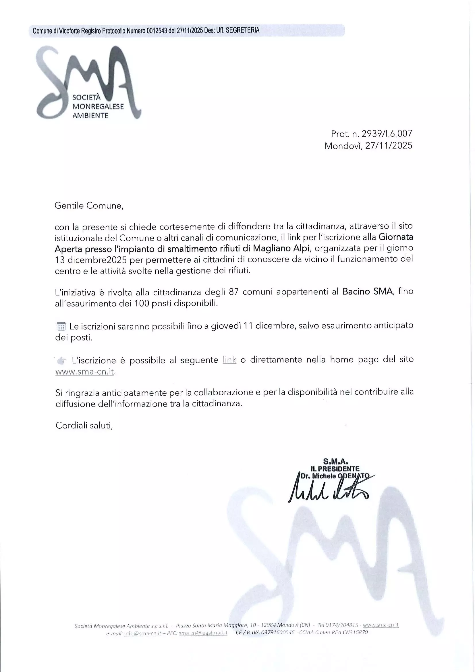 Descrizione 13 Dicembre 2025: Giornata Aperta presso l'impianto di smaltimento rifiuti di Magliano Alpi